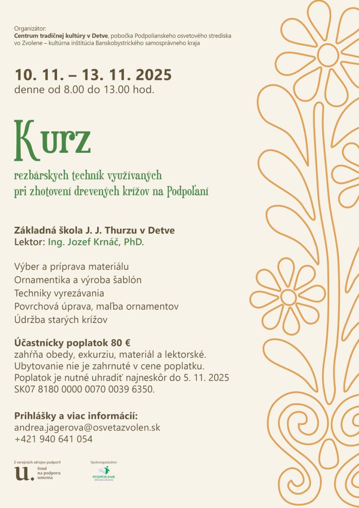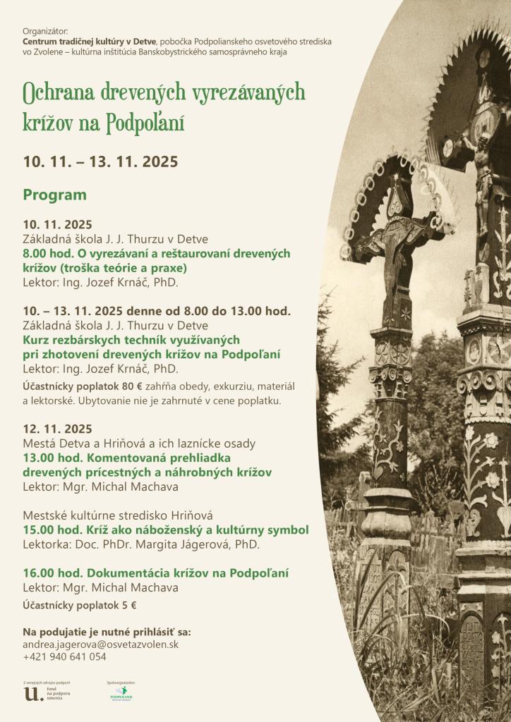 Veríme, že podujatie, ktoré sme pripravili bude prínosom v zmysle propagácie, starostlivosti a ochrany o drevené vyrezávané kríže na Podpoľaní.