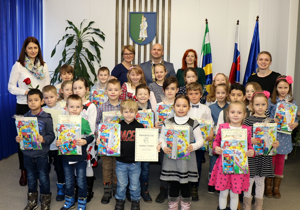 Po úvodných slovách pracovníčky MsÚ svojich mladších kamarátov pozdravili žiaci zo Základnej školy, na ul. Školskej, pod vedením Mgr. Martiny Skučkovej.