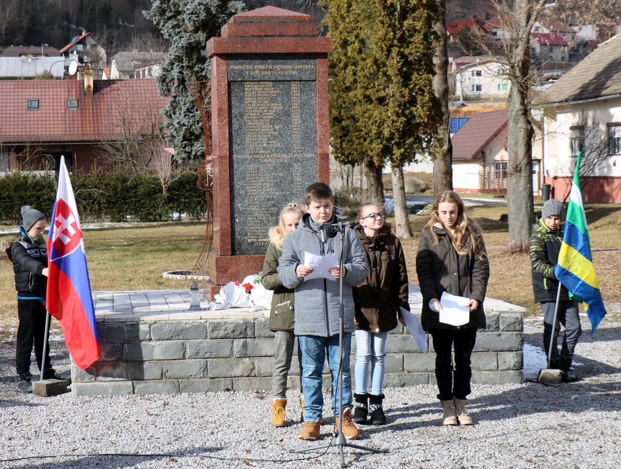 Po úryvku z básne Všetkým, čo vojnu chcú od autorky Márie Rázusovej – Martákovej nasledovali príhovory, ktoré boli vedené v duchu spomienok na ťažké boje, pri ktorých zahynuli občania nášho mesta, partizáni a vojaci oslobodzovacích armád z radov Sovietskej armády a Rumunskej kráľovskej armády. Pietny akt doplnili kultúrnym programom žiaci Základnej školy s materskou školou v Krivci a ŽSS Hriňovčianky, ktoré spievali a hrali ľudové piesne s vojnovou tematikou.