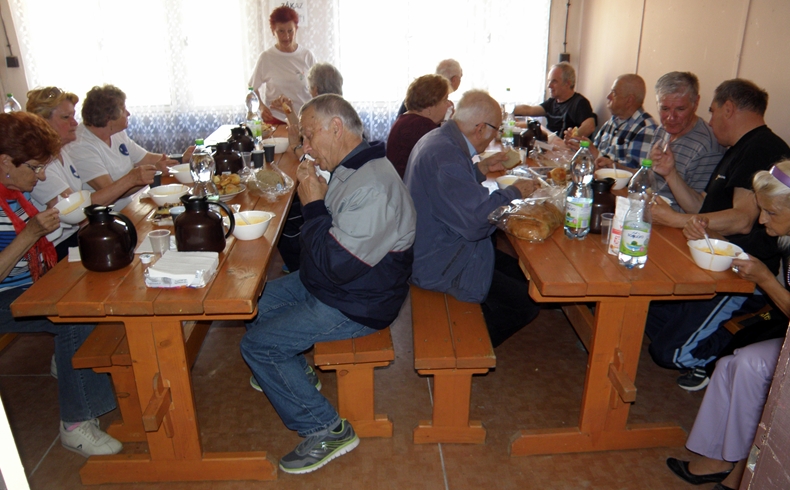 Nasledovalo spoločné posedenie, na ktorom bolo podané občerstvenie guľáš, koláče, káva, víno a voda..