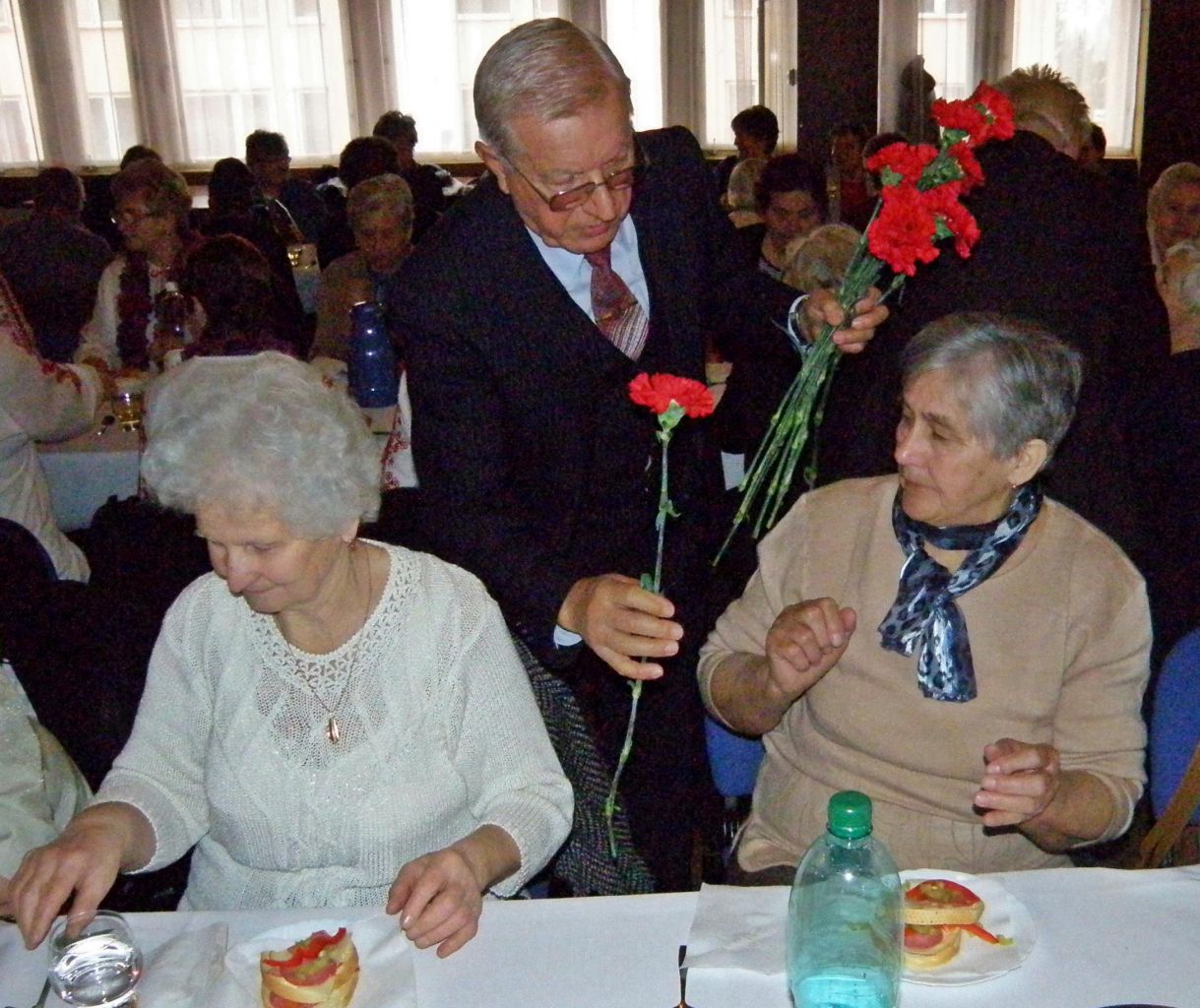 Nasledoval krátky kultúrny program žiakov ZUŠ Hriňová, ktorí sa účastníčkam stretnutia predstavili spevom a hrou ľudových pesničiek ako aj prednesom poézie. Po nich vystúpila naša spevácka sku pina "HRIŇOVČIANKY". Za predvedené vystúpenie patrí všetkým účinkujúcim naše vrúcne poďakovanie. Po skončení kultúrneho programu obdarovali predseda ZO JDS Ing. Petrus, predseda MsO ĽS-HZDS p. Krnáč a člen okresného predsedníctva SMER-SD p. Malček každú účastníčku červeným karafiátom.Nasledovalo malé občerstvenie - obložené chlebíčky, káva, koláč a vínko - pričom im do tanca aj na počúvanie hrala ľudová hudba ZUŠ Hriňová pod vedením pani učiteľky Barošovej. Aj im patrí naše veľké "ďakujeme".