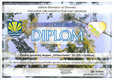 Dňa 18.marca 2010 sa v Žiari nad Hronom konala regionálna prehliadka speváckych súborov - seniorov z okresov Žiar nad Hronom, Detva a Žarnovica.