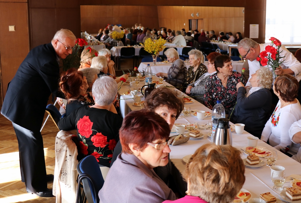Každá účastníčka obdržala z rúk predsedu ZO JDS Ing. Petrusa a člena Revíznej komisie ZO JDS pána Ľalíka červený klinček s gratuláciou k MDŽ.