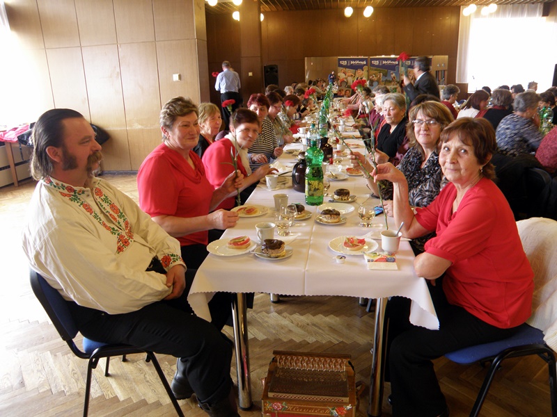 Po kultúrnom programe nasledovalo malé občerstvenie – obložené chlebíčky, koláč, káva, vínko – pričom do tanca aj na počúvanie hrala hudba speváckej skupiny JAVORINKA. Aj im patrí naše veľké „ďakujeme“. Každá účastníčka stretnutia bola obdarovaná krásnym červeným karafiátom, ktoré obdržali z rúk predsedu ZO JDS Ing. Petrusa, predsedu revíznej komisie ZO JDS Ing. Mihálika a člena revíznej komisie ZO JDS pána Ľalíka.