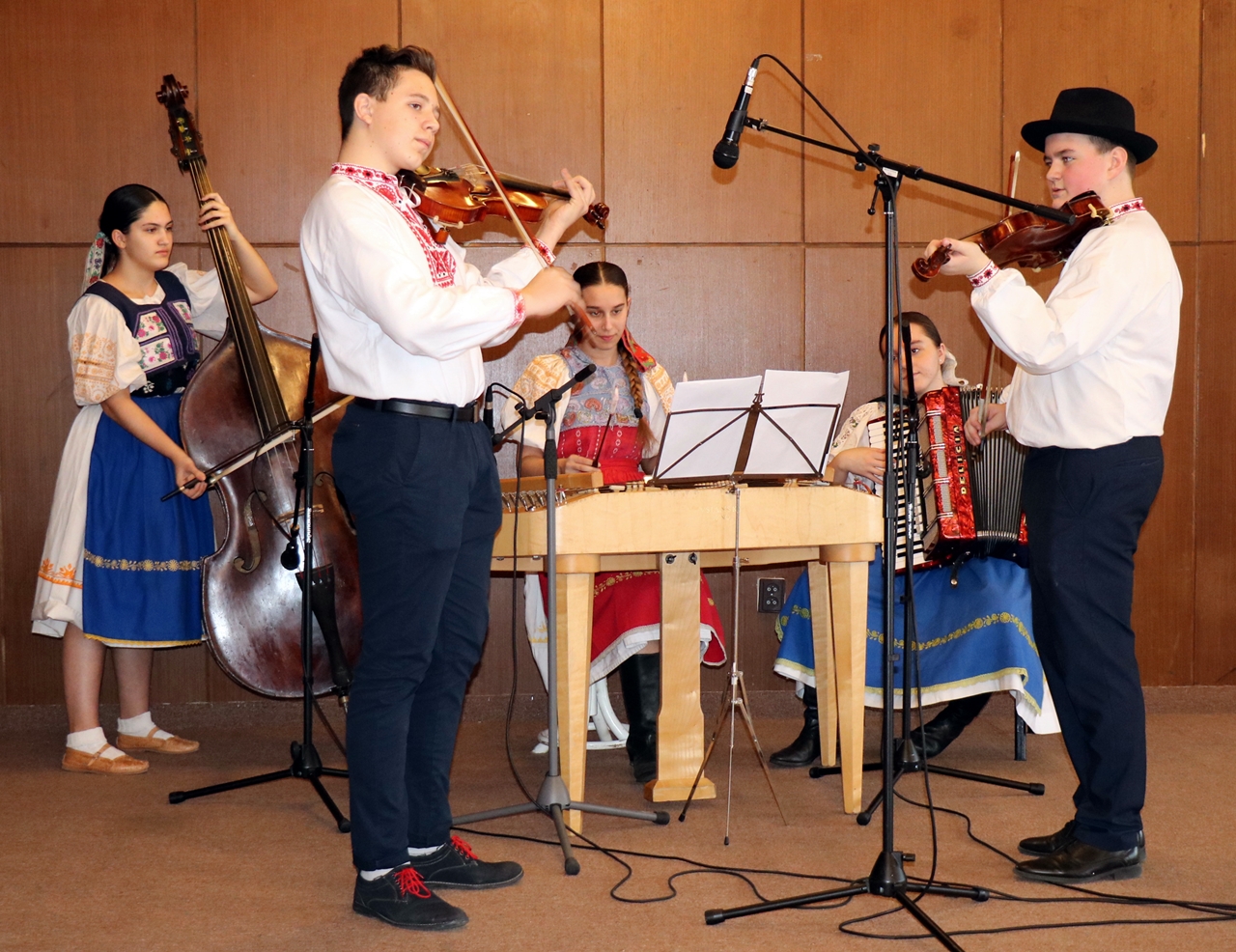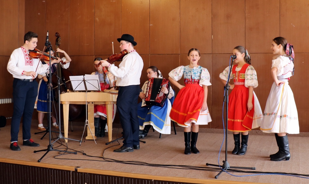 Po otvorení a odsúhlasení programu vystúpili žiaci ZUŠ Hriňová pod vedením pani učiteľky Václavíkovej a pani učiteľky Ilčíkovej. Zahrali a zaspievali „Na ľudovú nôtu“, čo prítomní seniori ocenili veľkým potleskom.