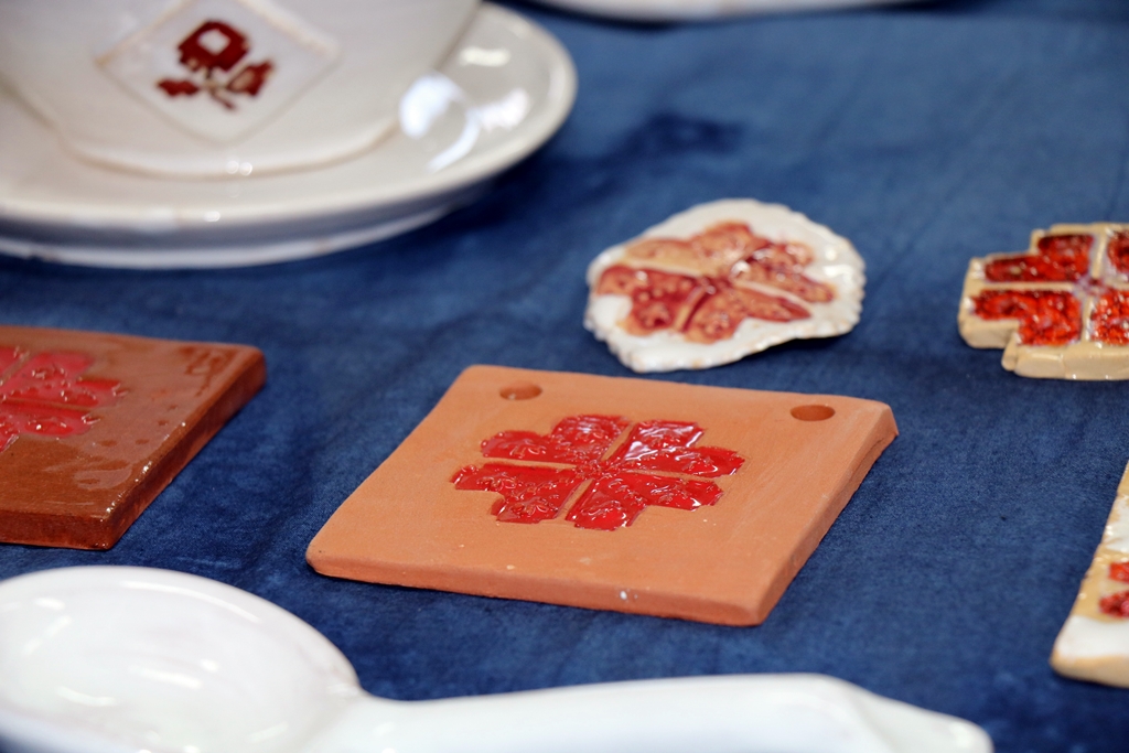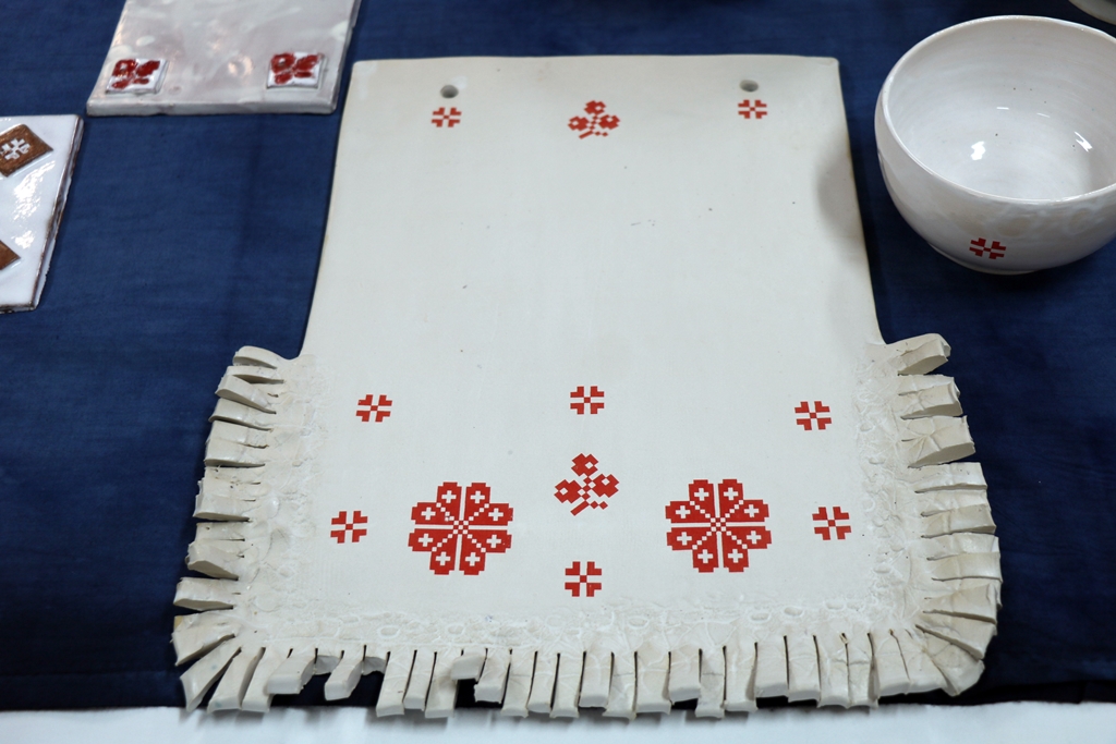 Autorka keramických výrobkov Ing. Vilma Babicová, si zvolila ľudovú výšivku z Podpoľania, ktorú aplikuje na úžitkové predmety vyrobené z hliny. Tu našla svoj štýl aplikácie, ktorý je rozpoznateľný od iných tvorcov. Aplikácia vzoru predstavuje prototyp so vzorom ruže, púčika a štvorlístka. Pre jej keramiku sú typické farby červená a biela. Výstava je sprístupnená pre verejnosť do 30.11.2018.
